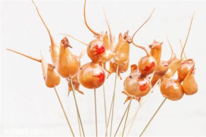 冰糖葫蘆冰糖葫蘆是中國(guó)傳統(tǒng)美食,它是將野果用竹簽串成串后蘸上麥芽糖稀,糖稀遇風(fēng)迅速變硬。北…